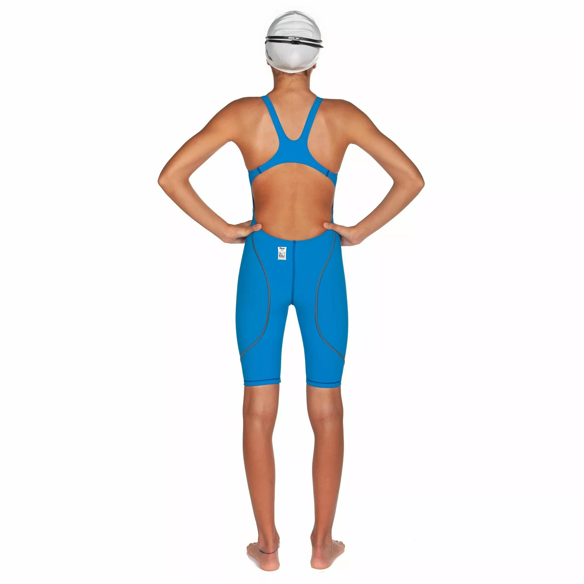 Inspire your young Wondy at her next race with our Super Hero Powerskin ST 2.0. Cut from a blue technical fabric, this girls’ racing swimsuit is printed with DC Super Hero Girl Wonder Woman and the words ‘I’m a Super Hero’. Visually bold, technologically advanced and extra durable, this open-back kneeskin is a smart first tech suit for young swimmers. Made of a sleek stretch shell and strategic compression lining, she’ll swim with awesome speed and feel all the positive effects of compression, like a stable core and enhanced muscle support. Just like Wonder Woman’s gear, this girls’ swimsuit is made for superhuman movement and comfort with a special flatlock seam pattern and reinforced straps. A FINA-approved design.