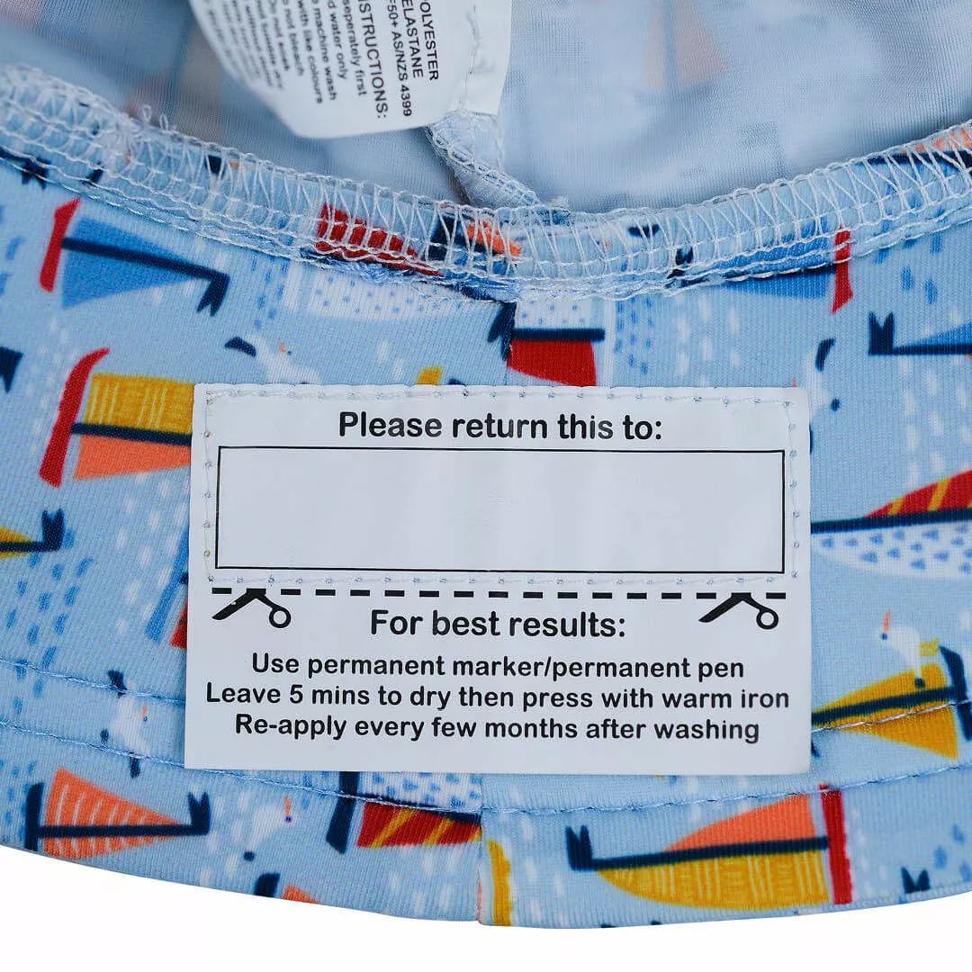 It’s like a mini America’s Cup on your head! A colourfully patterned print for little sea-faring fans.
