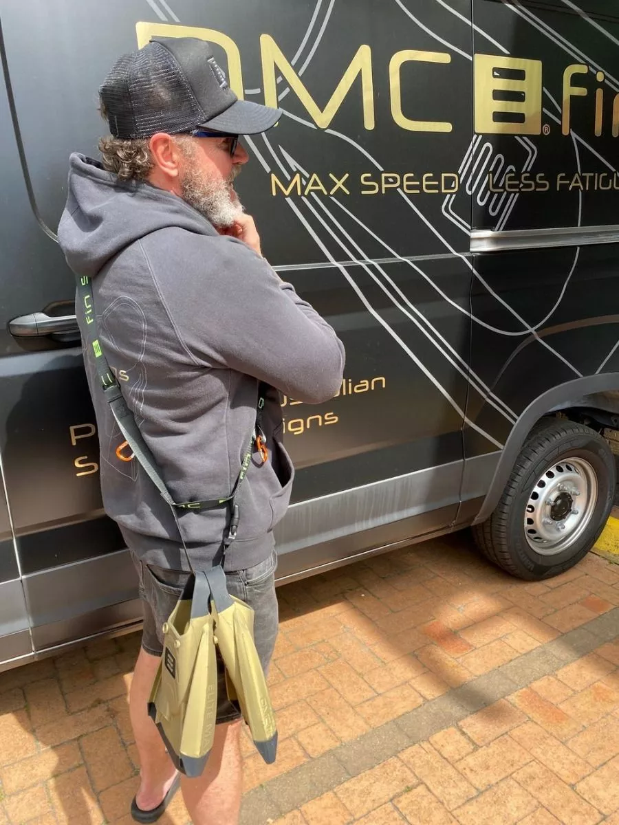 Carry your fins and extra bits on your DMC fin sling to and from your workout and be hands-free.