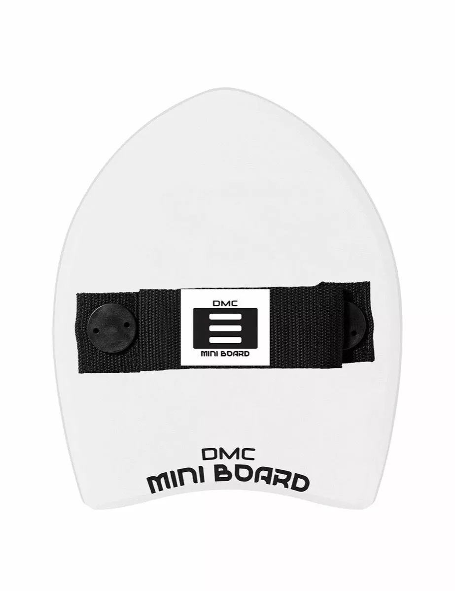 The new DMC Mini Board is a classic shaped Miniature Soft Surfboard for SAFE SURF FUN! Ride the DMC Mini Board for Bodysurfing on big outside sets for fast tubing reefs or just getting into your local shorebreak. Made from Top Quality PP Core with PE Deck and Rails it has a HDPE Slick Bottom for gliding over the waves. All 100% heat laminated. It has a double plug anchored hand strap and variable wrist leash (for left or right attack). Its rolled top down-rail and 30% bottom rail give a nice bite on the surface and ensure no poking injuries occur.Â