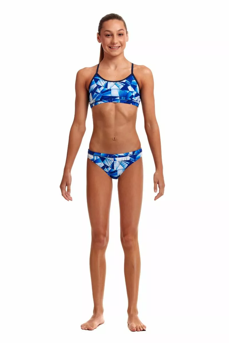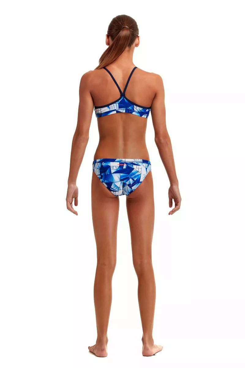 A firm fitting crop top and hipster brief suited to the sporty girl. It’s a secure fit with underbust and waist elastic and drawcord in the brief. Features a single shoulder bind strap finish.