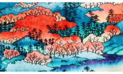 As we prepare our submission to be recognised as a religion, the true story of our origins can now be revealed. Many years ago, our spiritual leader was beckoned by the clouds to climb the misty mountain depicted in this print. What happened next is unclear but our leader returned several days later wearing nothing but colourful loin cloths and a mission to cover the world’s population in similar attire.