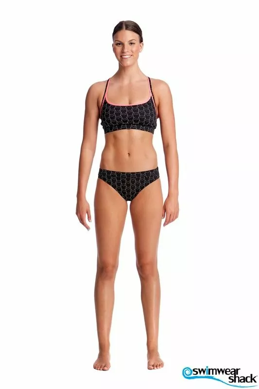 Firm fitting sports crop top with racer back and double strap bind finish with wide elastic for under bust support to give you the support you need in a sports top. Sold as separates and available in sizes 8 – 14.