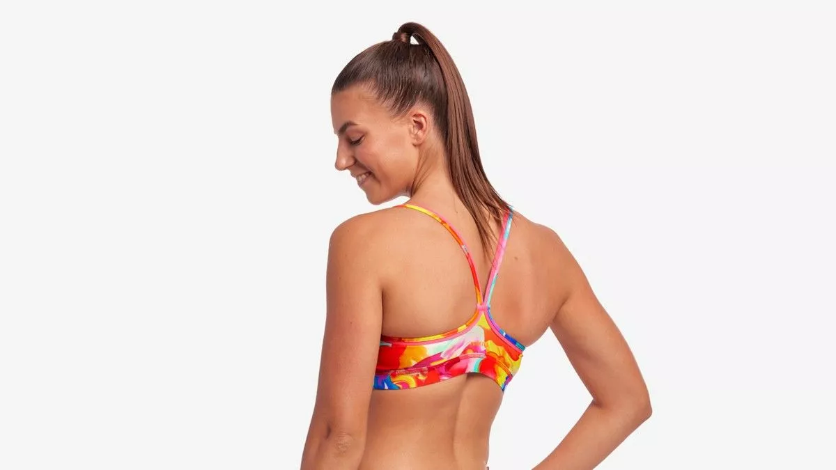 With a firm fitting racer back, double bind shoulder straps plus a wide under bust elastic, I promise to keep you secure and comfortable throughout your swim. I’m perfect for regular swimming and wearing under a wetsuit if you’re open water swimming. I’m sold as a separate. I’m made with all the care and love in production that makes me proud to be Funkita. Made from our exclusive C-Infinity fabric, a 100% Italian polyester that is a colourful breakthrough in chlorine resistant fabric technology! The superior choice for swimmers, C-Infinity has exceptional strength and can retain its durability far beyond other elastane swimwear fabrics. Ideal for frequent pool use for recreational and performance-based swimming.