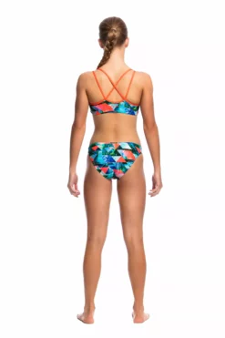 A double strap crossover back that provides added comfort and support for hours in the pool. Pairs back with the new skinny brief which provides firm rear coverage with drawcord.