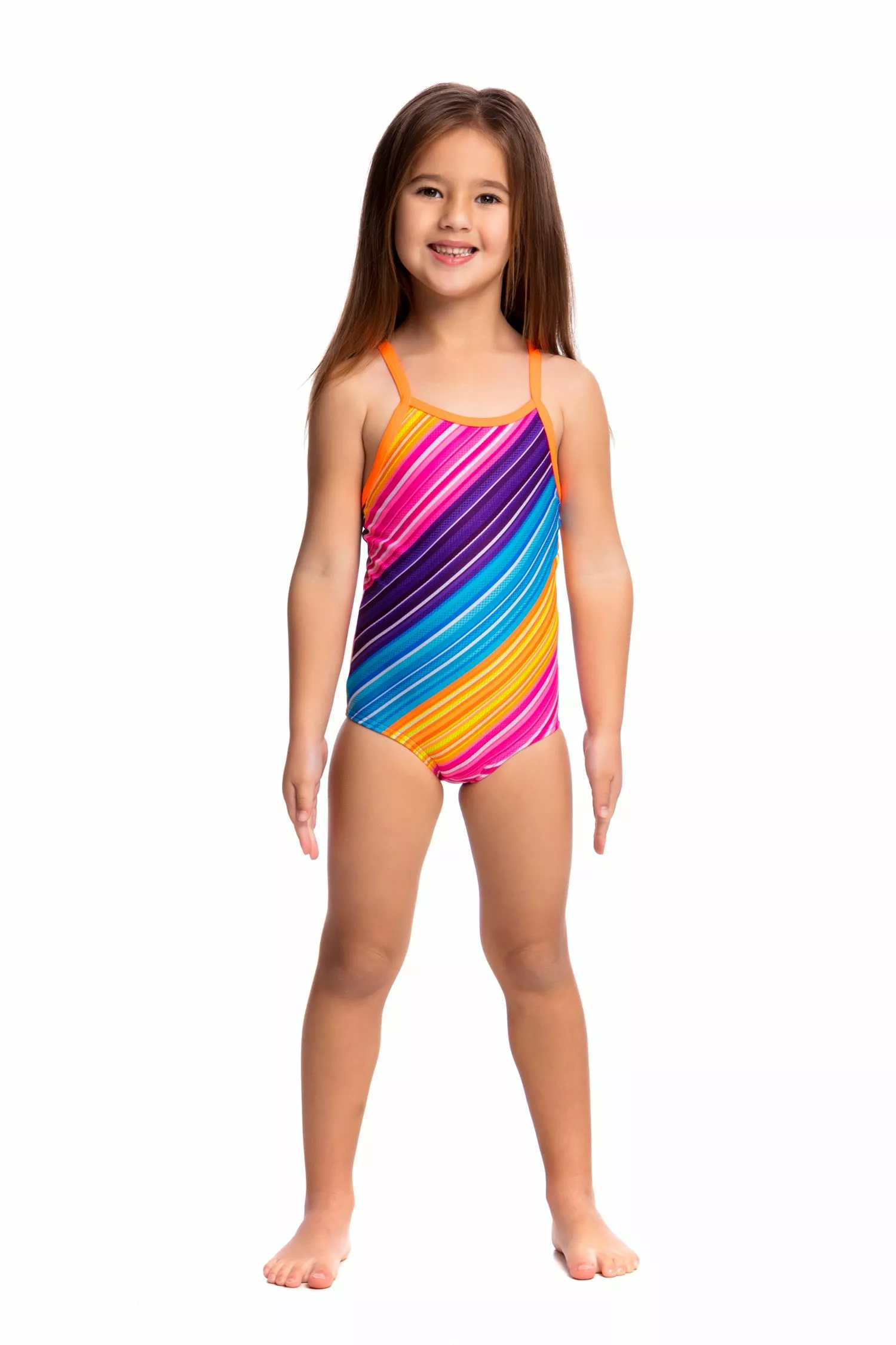 With full back coverage and a racer strap finish, this simple style is easy to put on and take off. Features a low leg, single strap bind with Funkita embroidered logo and full front lining. Available in sizes 1 – 6.