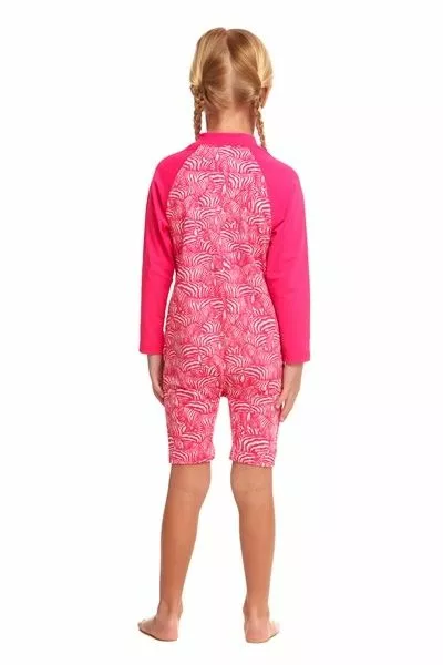 Long sleeve sunsuit with mid-length front zip and comfortable fit makes this the perfect outfit for your watery adventures. Constructed with our long lasting, chlorine resistant, UV50+ protection fabric it will keep you protected from the sun throughout the day. Available in sizes 1 – 7.