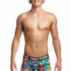 I’ve got a drawcord to keep me locked in position and a wide elastic leg opening and waistband for added comfort around your hips and above your knee. I’m branded with a rubber print Funky Trunks logo and made for durability, warmth and comfort whenever we jam together. Made from our exclusive C-Infinity fabric, a 100% Italian polyester that is a colourful breakthrough in chlorine resistant fabric technology! The superior choice for swimmers, C-Infinity has exceptional strength and can retain its durability far beyond other elastane swimwear fabrics. Ideal for frequent pool use for recreational and performance-based swimming.