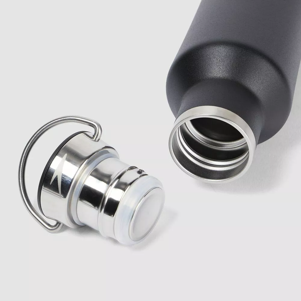- Reusable metal beverage bottle, made from durable stainless steel