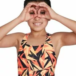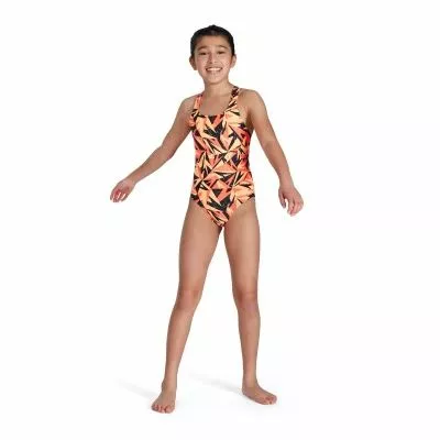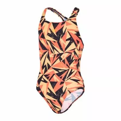 Make a statement in Boom logo prints. Celebrating the Speedo brand, our sporty girls’ Medalist swimsuit showcases our iconic Boom logo in a ‘shattered’ print design with intense shades of orange, navy and red. Ideal for regular pool sessions, the medalist design aids shoulder movement and flexibility so young swimmers can cruise through their swim without feeling held back. The suit is also fully lined at the front for comfort and modesty during their swim. Made from our soft Endurance10 fabric, it provides higher chlorine resistance than standard swimwear fabrics and fits like new for longer with CREORA® HighClo™.