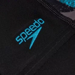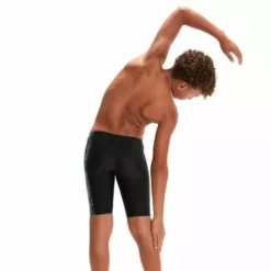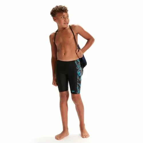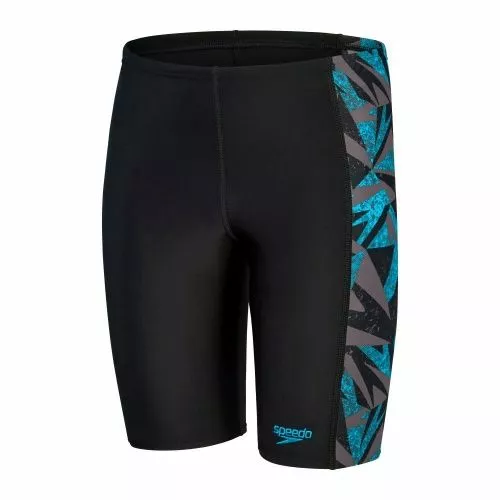 Iconic Speedo style. Celebrating the Speedo brand, this sporty black Jammer features a side panel of our ‘shattered’ Boom logo print in vivid shades of blue and black. Lined at the front for comfort and modesty, the jammer includes an internal drawcord to allow young swimmers to adjust the fit. Made from our shape-retaining Endurance10 fabric, it fits like new for longer with CREORA® HighClo™. Offering higher chlorine resistance than standard swimwear fabric, the material is soft and stretchy, so your child can enjoy their swim without feeling restricted.