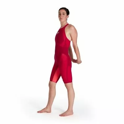 Focused on maximum flexibility, it promotes a greater range of motion and core stability through specially layered fabric for better performance at every race. Its lightweight, closed-back construction helps you feel lighter and ride higher in the water for optimal body positioning. Moderate compression enhanced with additional compressive inner leg seams allows for greater muscle support, so you can put the real pressure back on the competition. The next generation of fast is here.