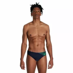 Style and durability from our Essentials range. Feel comfortable during training wearing the navy Medley 7cm Brief, featuring a drawstring waist and a green kinetic wave print design. Ideal for regular pool sessions, our ECO Endurance 10 fabric offers higher chlorine resistance than standard swimwear fabrics and fits like new for longer with CREORA® HighCloâ„¢. It’s made from 100% recycled waste fabric, so it’s better for the environment too!