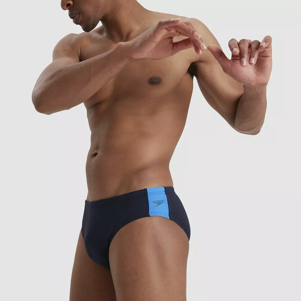 Upgrade your swim with iconic Speedo branding. Feel inspired in the pool wearing our sleek navy 7cm Brief, featuring a bright blue side panel print of our iconic Speedo Boom. A drawstring waist ensures a great fit during your swim, while our quick-drying, 100% chlorine-resistant Endurance+ fabric is ideal for everyday fitness training.