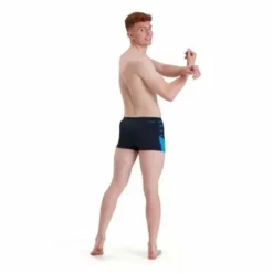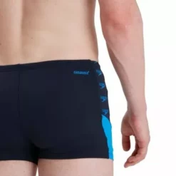 Upgrade your swim with iconic Speedo branding. Feel inspired in the pool wearing this sleek navy Aquashort, featuring a vivid blue vertical repeat pattern of our iconic Speedo Boom. A drawstring waist ensures a great fit during your swim, while our quick-drying, 100% chlorine-resistant Endurance+ fabric is ideal for everyday fitness training.