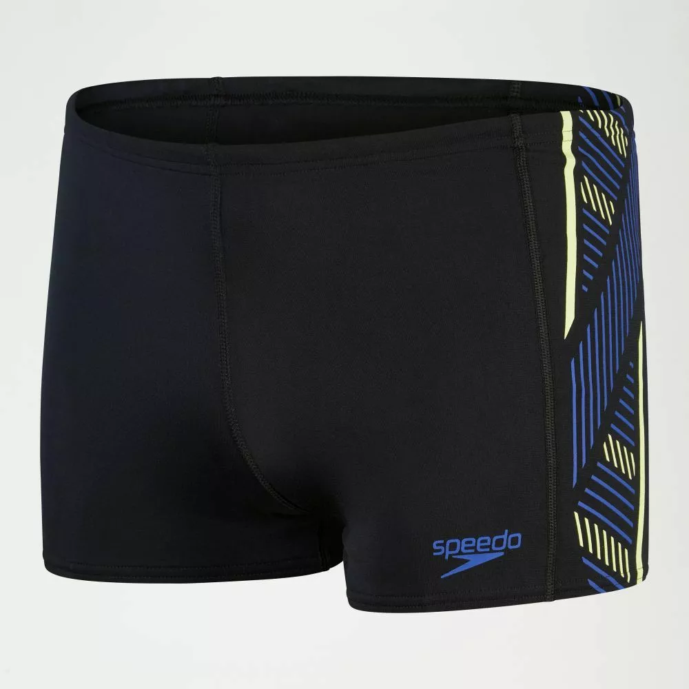 Look the part in training wearing the Tech Aquashort, featuring a geometric plastisol panel print design in blue and yellow. A drawstring waist allows for an adjustable fit, so you feel confident and secure during your swim. Designed to be durable and better for the environment, the aquashort is made from our new ECO Endurance+ fabric, which is 100% chlorine resistant, quick-drying and made from 50% recycled materials.