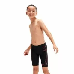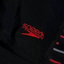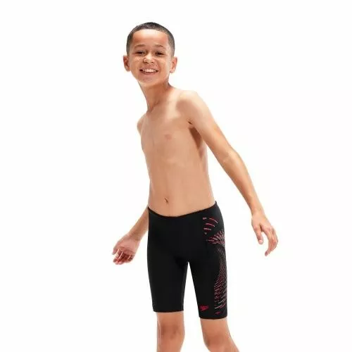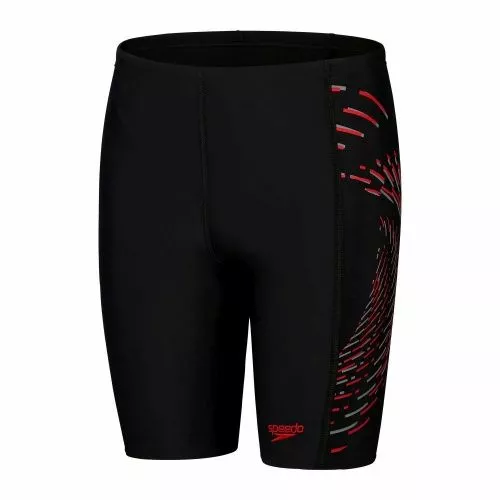 Speedo Essentials – everything your child needs for a great swim. Featuring a red and grey ‘cresting wave’ plastisol graphic, this sleek-looking black Jammer is stylish and understated. Ideal for training, lessons and fun in the pool, it’s lined at the front for comfort and modesty and includes an internal drawcord to allow young swimmers to adjust the fit. Providing higher chlorine resistance than standard swimwear fabrics, the jammer offers excellent shape retention and fits like new for longer with CREORA® HighClo™. If you’re looking for great eco-credentials, it’s got those, too: our exclusive Eco EnduraFlex fabric is made from 100% recycled pre-consumer waste, such as fabric waste from factories.