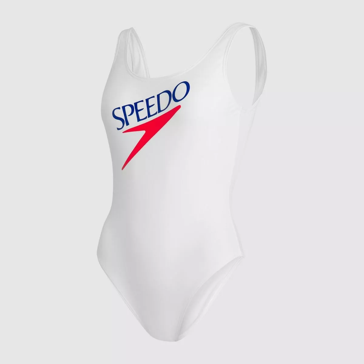 Make a style statement with the Speedo Legacy collection. This striking white U-back swimsuit looks stunning and features the classic Speedo logo for a simple but bold look. Comfy whether you’re lounging or lane swimming, the swimsuit features a scoop neck, deep U-back and medium leg for an on-trend fit. Made from Speedo’s soft and stretchy new Speedo Eco EnduraFlex – all the shape-retaining benefits of their Endurance10 fabric, but made from recycled yarns.