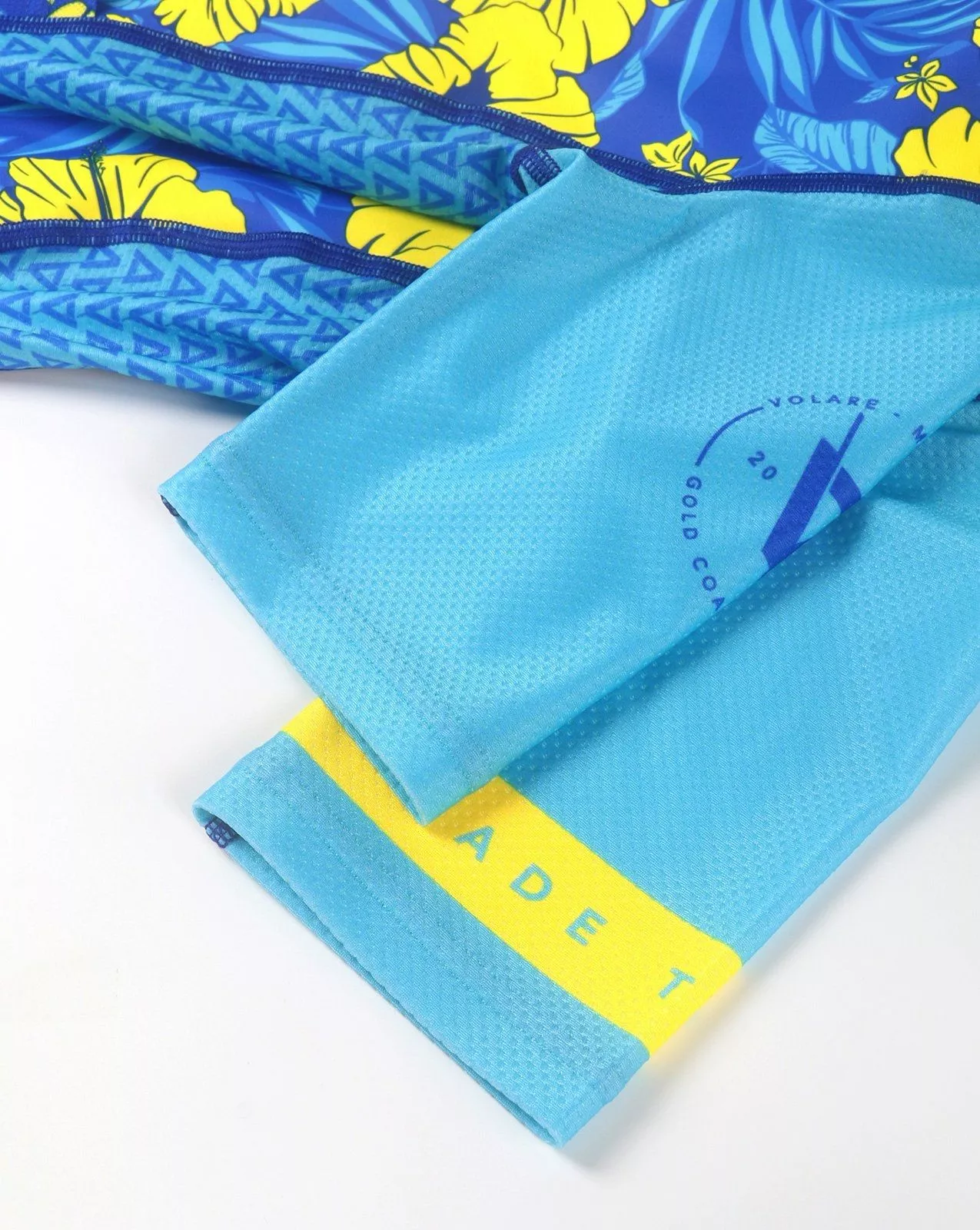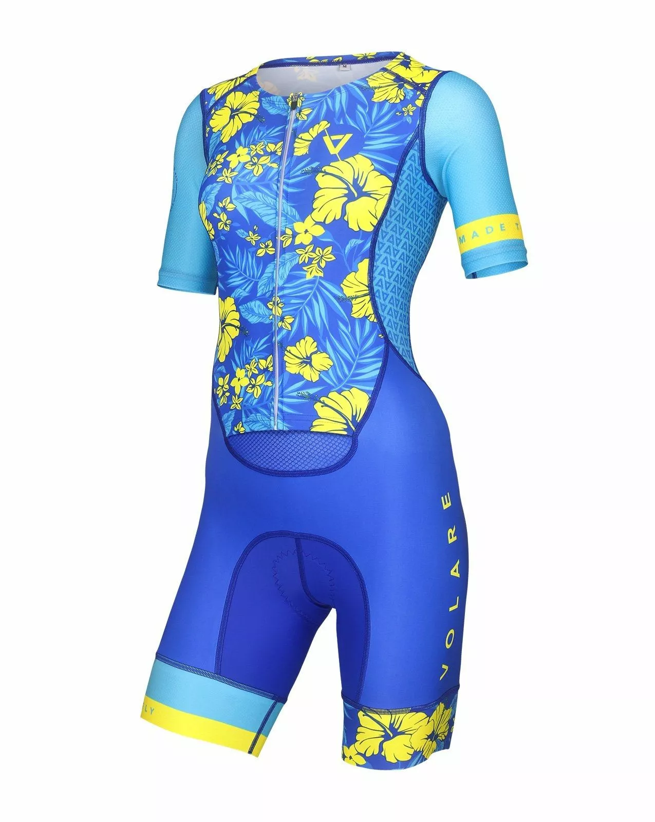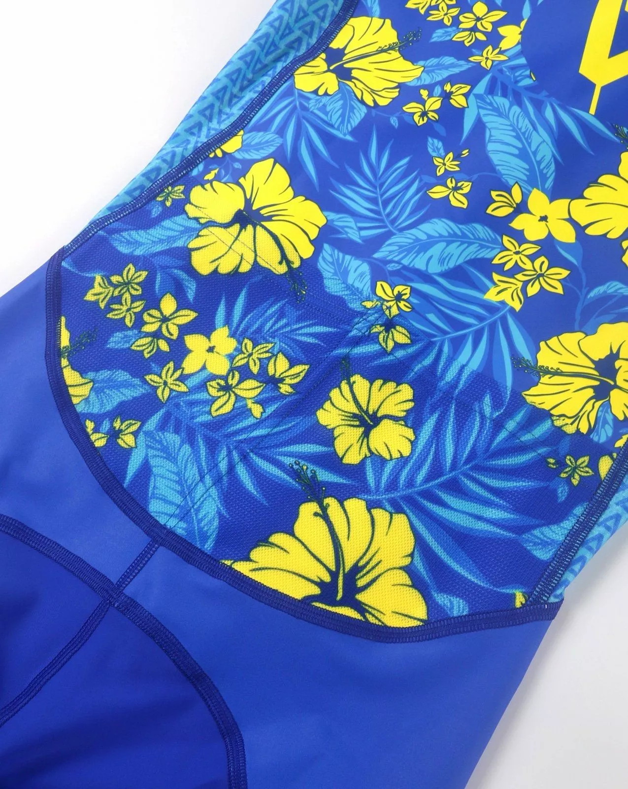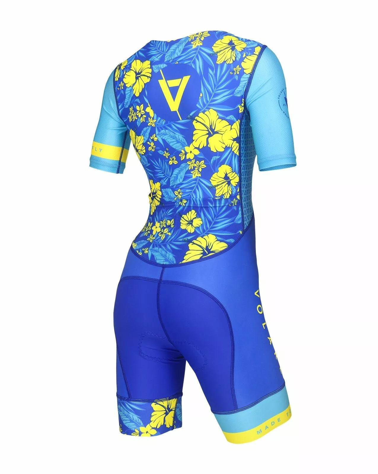 Volare is all about performance and race day comfort, but who said you can’t have fun and look good while pushing your limits? The women’s specific Hibiscus sleeved tri suit is a fusion of surf and triathlon styling, drawing inspiration from the Hibiscus flower which is a symbol for glory and synonymous with beach and surf culture.
