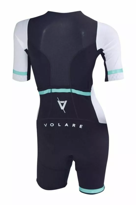 The Volare short sleeved performance triathlon suit provides clean aerodynamic lines, maximising your aero potential on the bike. Designed to be worn under a wetsuit, swim skin or simply on it’s own for the swim leg. Constructed entirely from the very best French materials and packing stylish looks that will set you apart from the crowd.Â