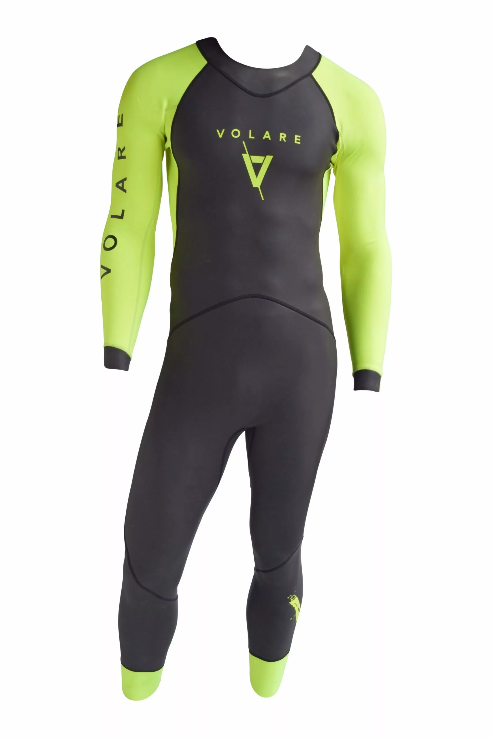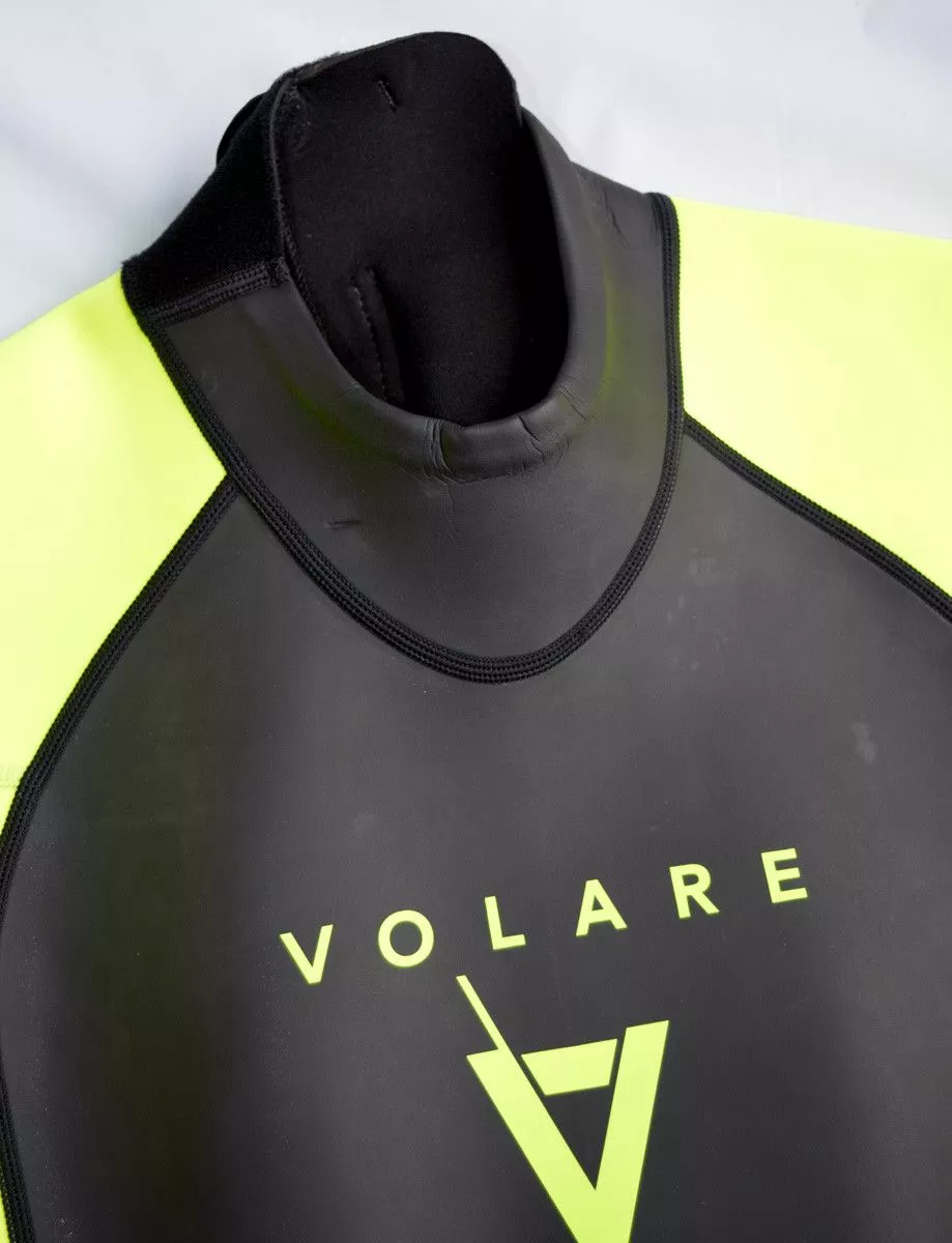 The Volare V1 wetsuit is designed specifically for swimming and triathlon. Its neon yellow arms and leg panels make the suit highly visible in the water. Making this suit ideal for open water swimming, triathlon and surf lifesaving. In a sea of black neoprene, you will be sure to standout from the crowd.