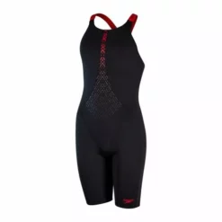 This sleek, tech-inspired Performance Kneeskin is packed with technical innovations to help take your training to the next level. Striking in black with a graduated red plastisol print design, the kneeskin includes smooth-fit comfort straps and a highly supportive 360 Powermesh bra liner for comfort during tough workouts. A specially placed performance seam enhances the suit’s streamlined shape, while anti-microbial technology ensures it stays fresh swim after swim. Designed to be durable and better for the environment, it’s made from our new ECO Endurance+ Pro fabric, which is 100% chlorine resistant, quick-drying, made from 50% recycled materials and has the added benefit of being finished with a water repellent and anti-microbial treatment.