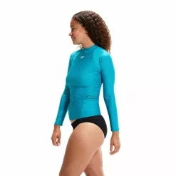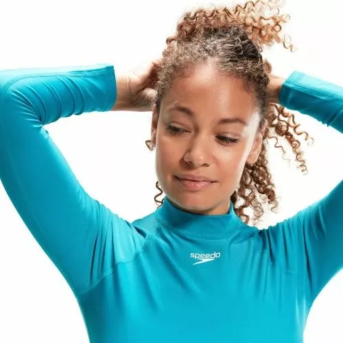 Stylish sun protection swimwear. Come rain or shine, this Long Sleeve Rash Top from our Essentials range has you covered. Snug-fitting in a pull-on style, it features flatlocked seams for a comfortable fit against the body, and includes UPF40+ fabric sun protection – ideal for active beach days spent in and out of the water. Made using our ECO EnduraBrite fabric for superb colour performance. Offering higher chlorine resistance than standard swimwear fabrics, the rash top fits like new for longer with CREORA® HighClo™ and is made from 100% recycled materials so it better for the environment too.