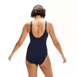 Enhances, flatters and feels good all over. The sporty-look navy LunaLustre swimsuit features a squared neckline and a flattering scooped back. A swirling sand-ripple print runs from the strap to the waist, creating a contouring effect that narrows the waist. Offering medium bust support, the hidden bust shelf liner and adjustable straps ensure a great fit during your workout, while the all-over shaping fabric provides support where you need it. Made from 100% pre-consumer waste fabric, our soft new ECO SHAPE COMPREX ULTRA fabric teams the best in shapewear innovation with the latest swimwear technology. Perfect for your regular workout, it includes LYCRA® XTRA LIFE™, which is ultra-chlorine resistant and lasts twice as long as standard swimwear fabrics.